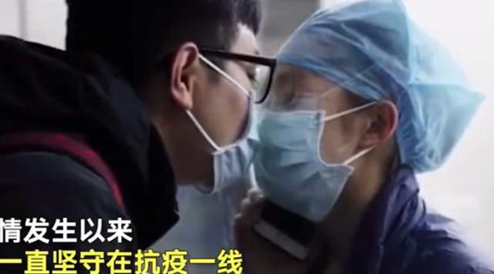 只能带着口罩在医院门前隔着玻璃留下一吻