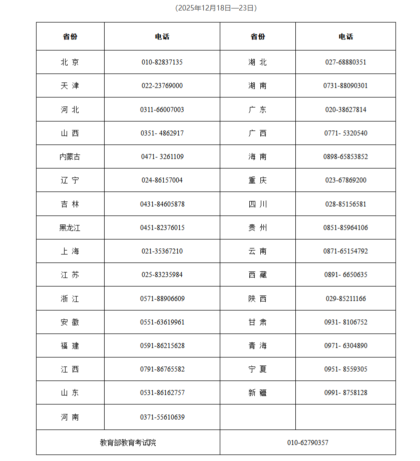 2026年全国硕士研究生招生考试在即,教育部于12月18日向社会公布2026年全国硕士研究生招生考试违法违规行为举报电话。