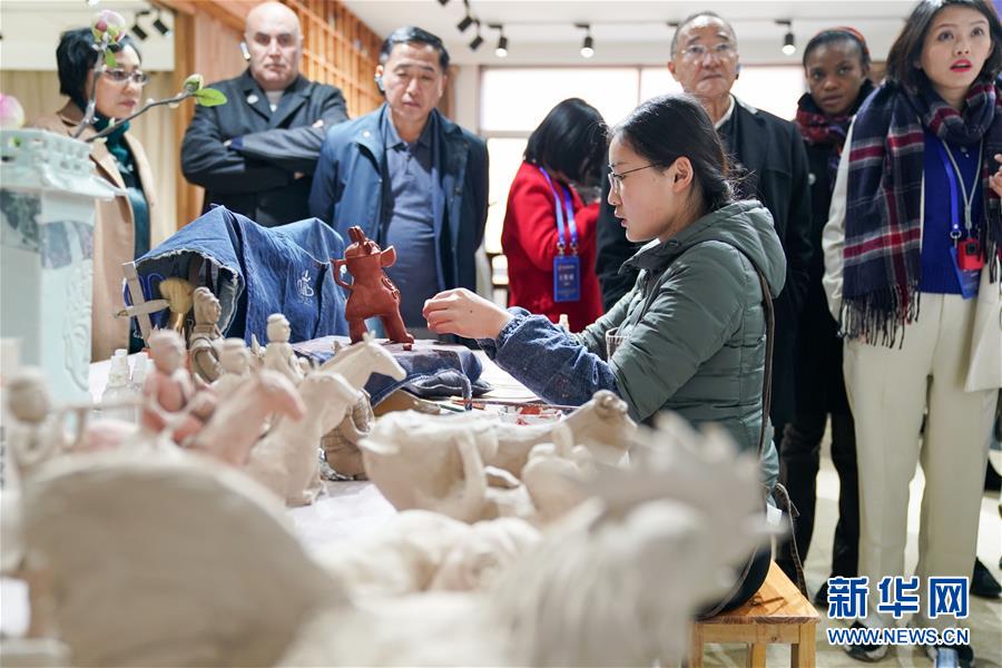 12月8日,参访嘉宾观看外桐坞村驻村艺术家制作陶艺。新华社记者 殷晓圣 摄