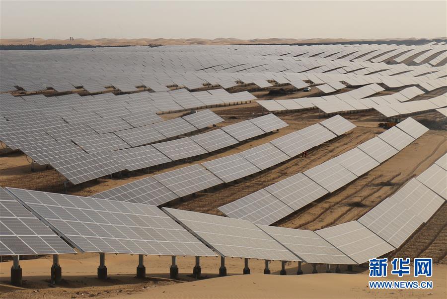 这是内蒙古库布其沙漠腹地的一处光伏治沙基地(2019年4月4日摄)。新华社记者 李云平 摄