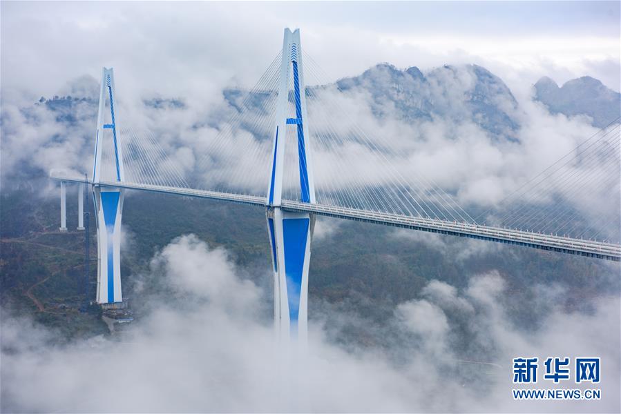 云雾缭绕中的贵州平塘特大桥(2019年12月30日摄)。 新华社记者 刘续 摄
