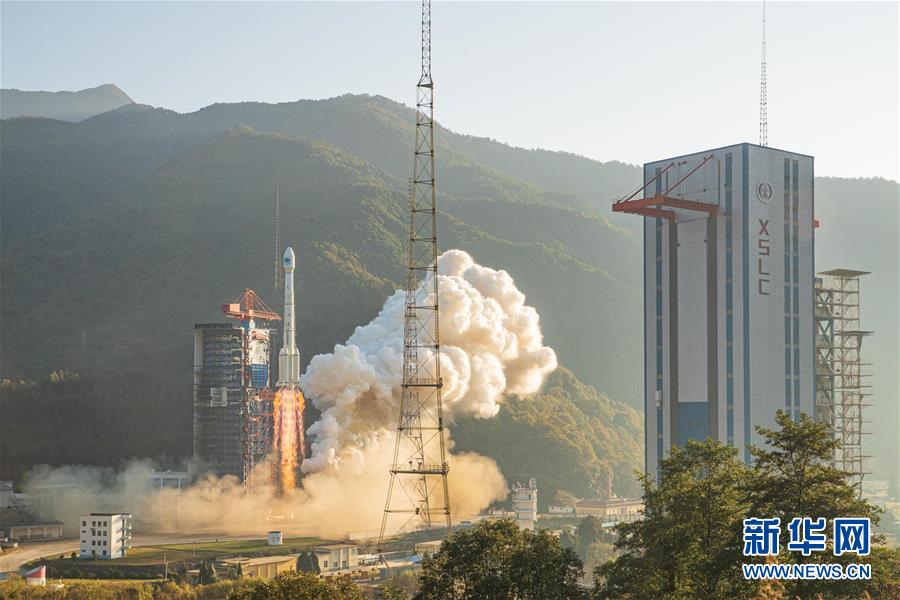 2019年11月23日8时55分,我国在西昌卫星发射中心用长征三号乙运载火箭(及配套远征一号上面级),以“一箭双星”方式成功发射第50、51颗北斗导航卫星。 新华社发(郭文彬 摄)